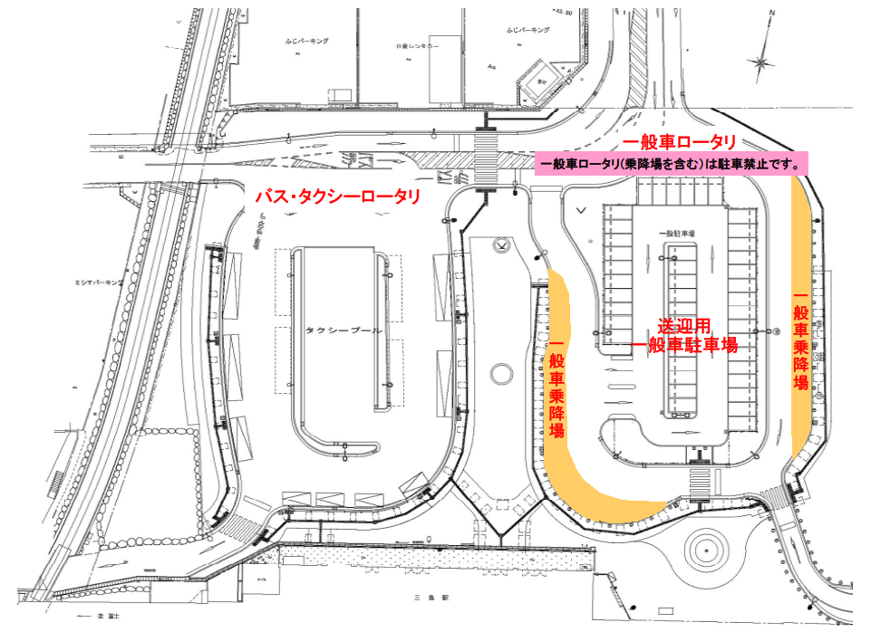 三島駅北口広場(一般車ロータリー、駐車場料金等)の概要について