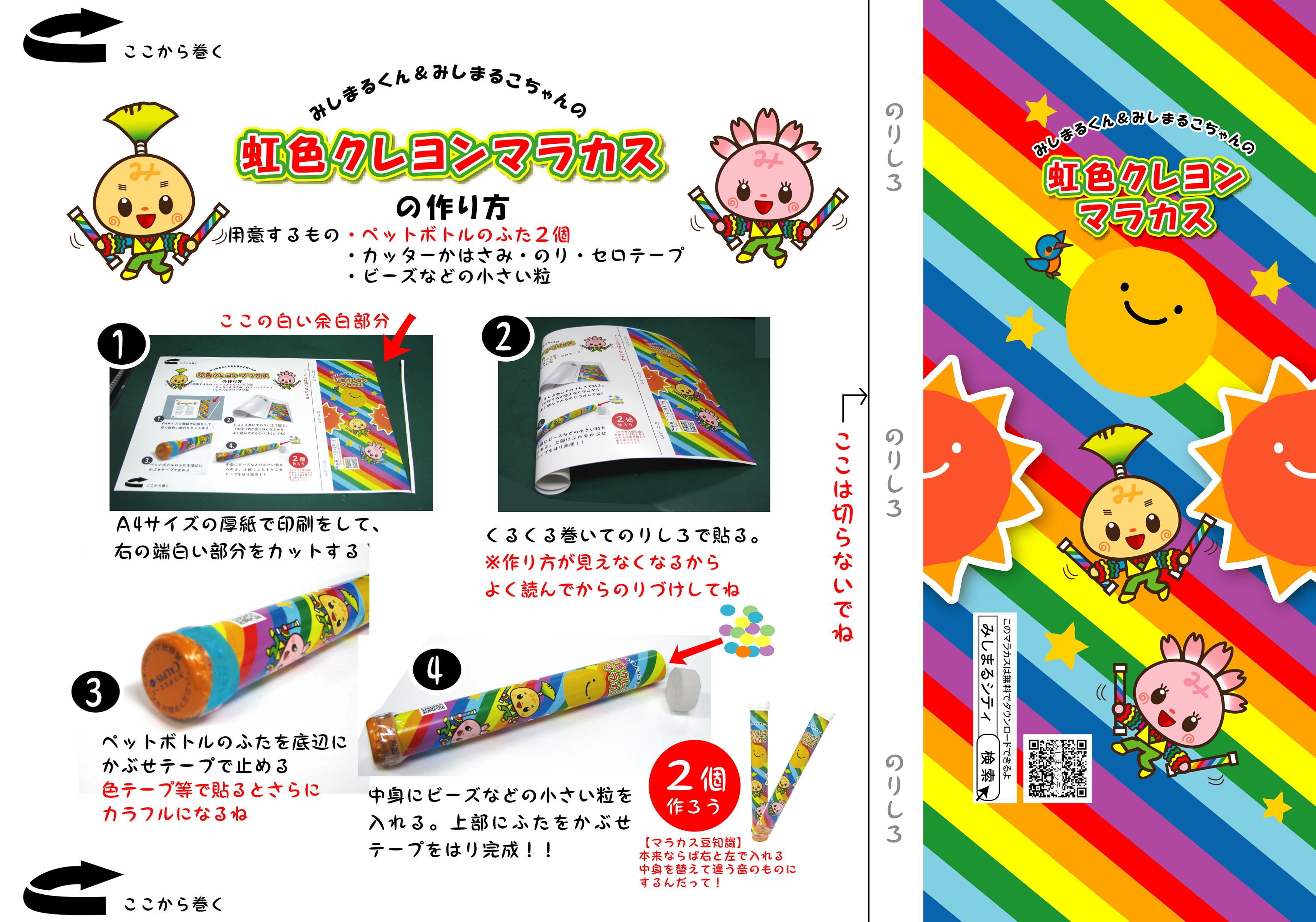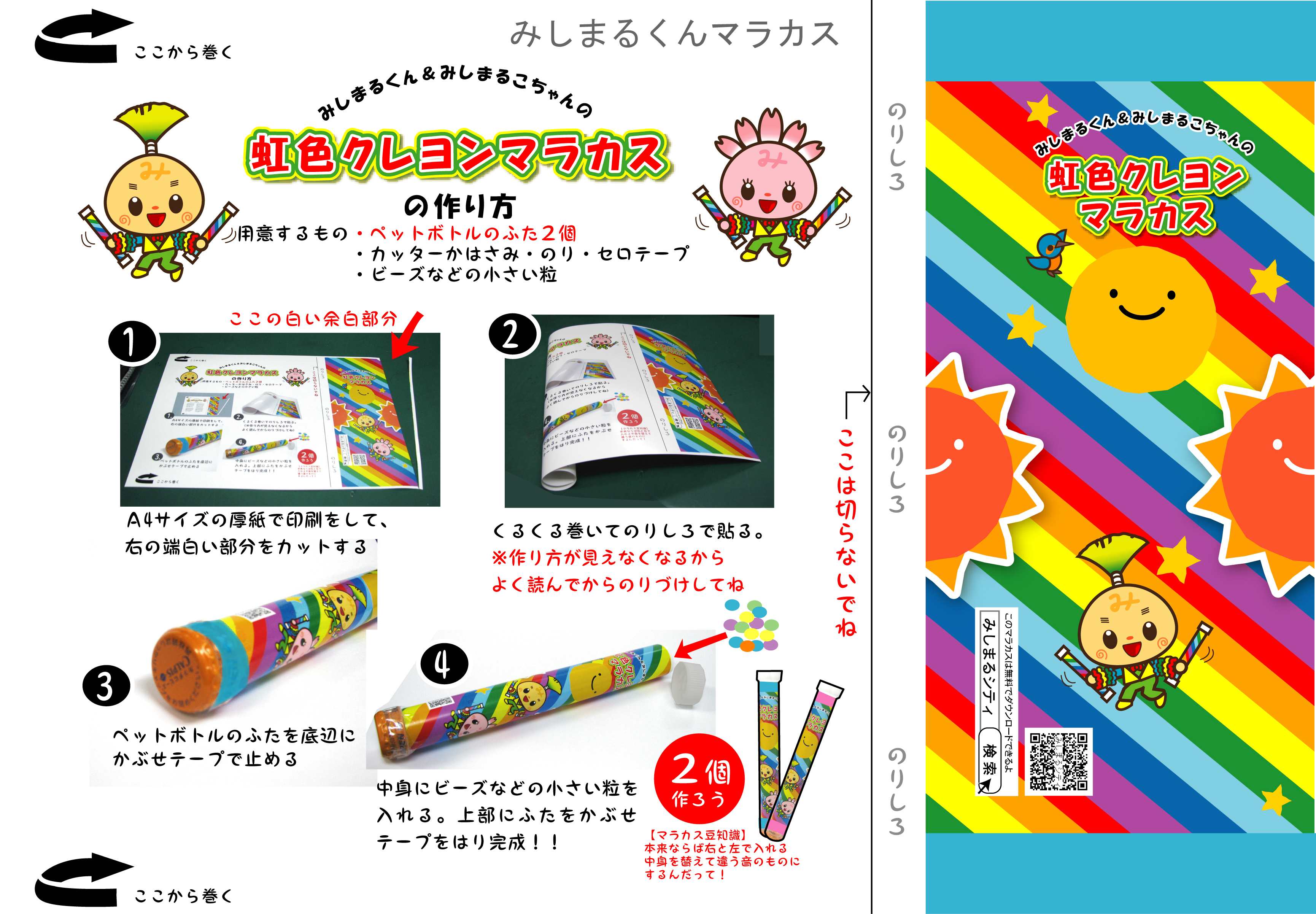 「みしまるくん・みしまるこちゃん」のイメージソング『みしまるくん&みしまるこちゃんのまるまるマンボ!』の歌詞に出てくる『虹色クレヨンマラカス』です。