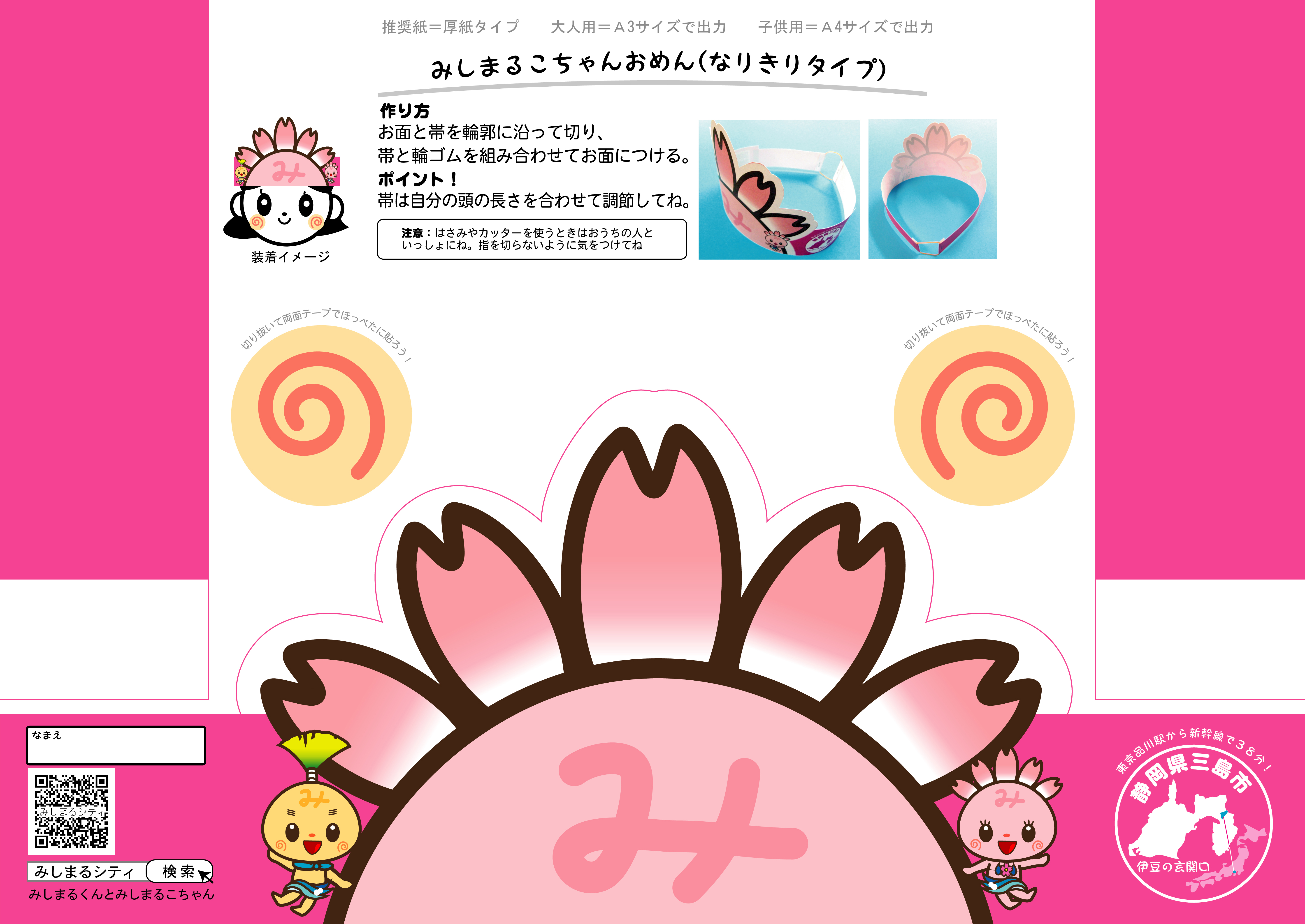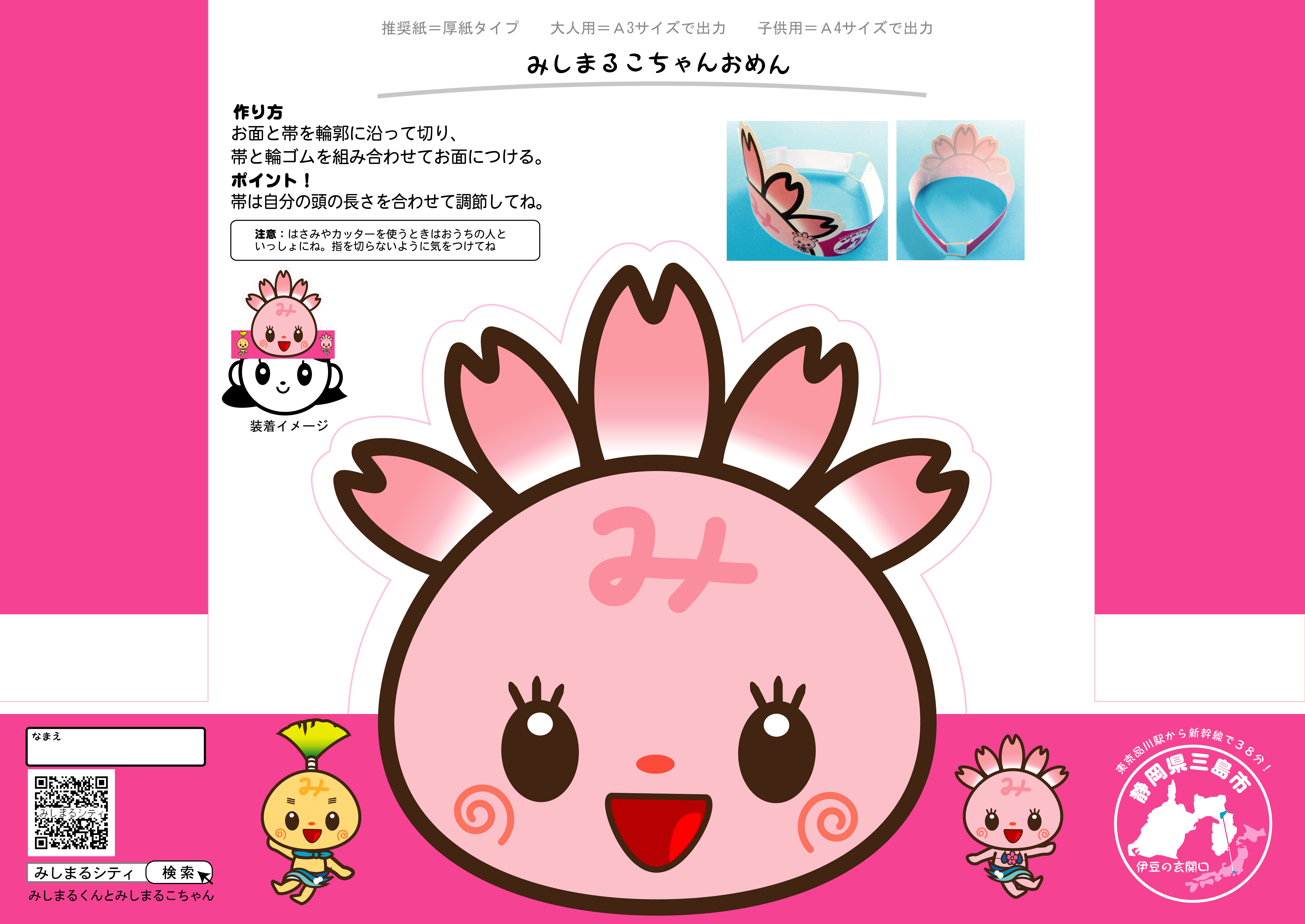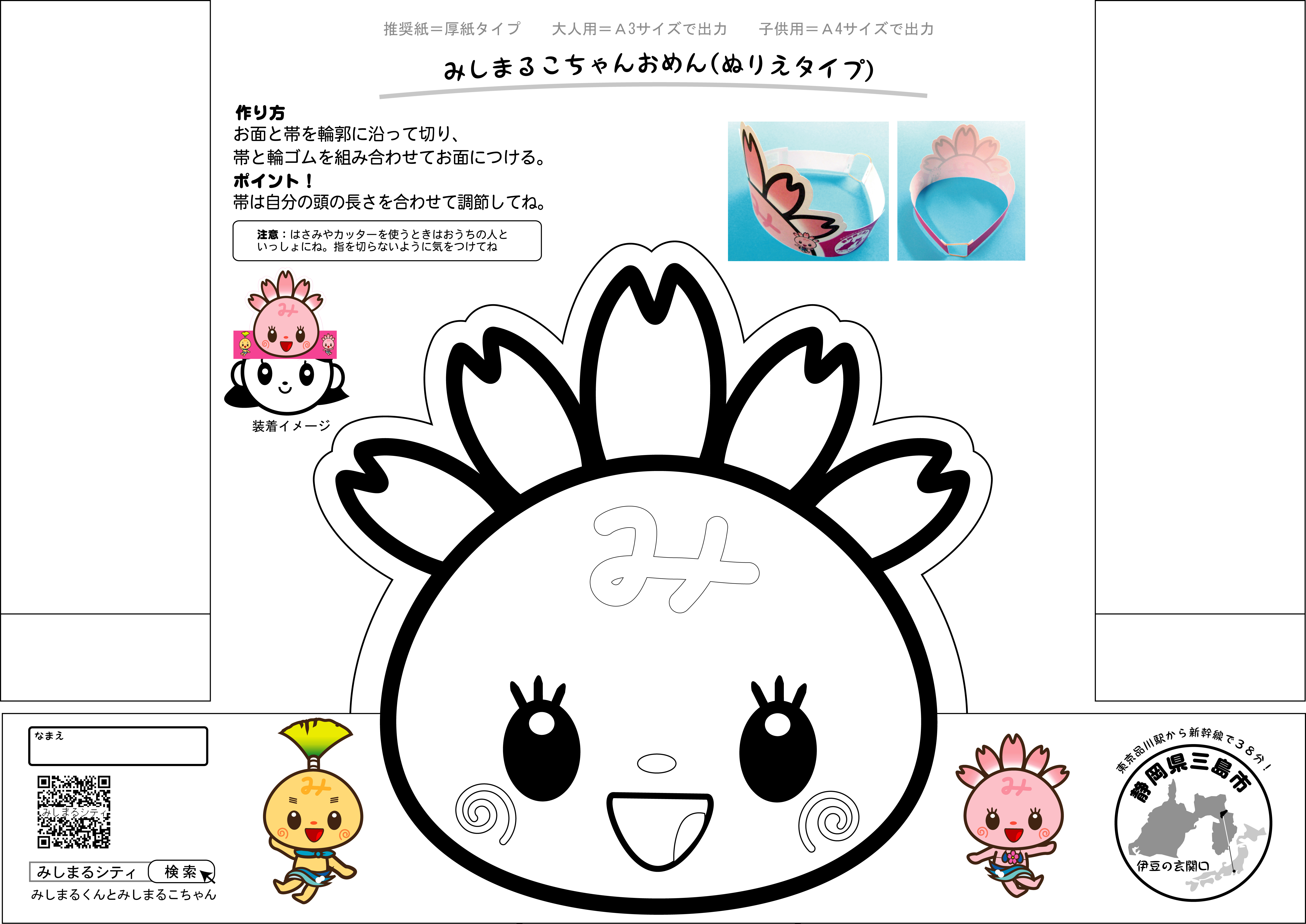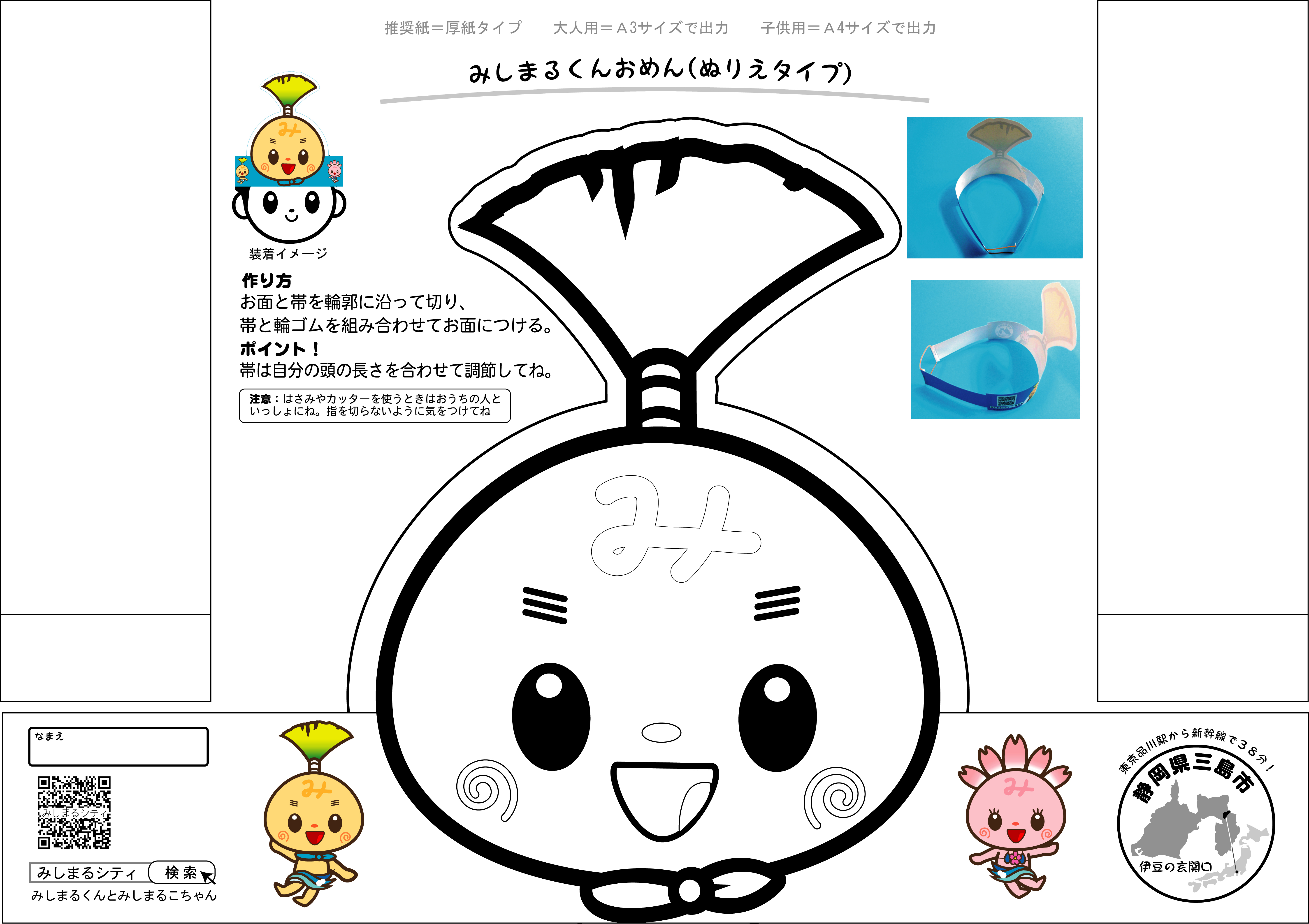 みしまるくん・みしまるこちゃんおめん・ぬりえ