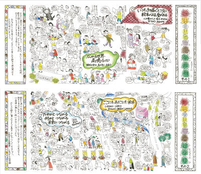 現時点で既に行われていること、これから計画していることに加えて、「こんなまちになったらいいな」という、熱い思いをこめて描きました。