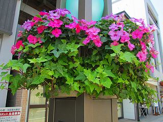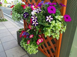 大通りのイベント前に作るハンギングバスケットは、いろいろな種類の苗を自由に選んで作ります。