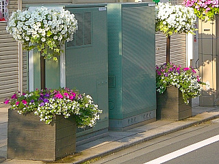 三島大通りや芝町通り、三島駅前などに飾られている「街路灯花飾り(花灯り) [その他のファイル/29KB]」と「スタンディング式花飾り(花ぼんぼり) [その他のファイル/49KB]」、ハンギングバスケット [その他のファイル/30KB]などの花飾りは「花サポーターみしま」が作っています。