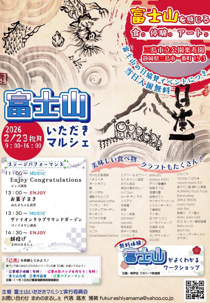 2月23日【楽寿園】富士山の日(入園無料)/富士山いただきマルシェ